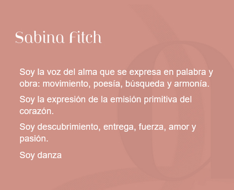 Sabina Fitch, bailarina desde pequeña, despierta después de un exilio que guardó en silencio, hasta que su alma le exigió ser congruente con su existencia; le pidió dejar de lado la ambivalencia que la tenía emocionalmente dividida entre el deber ser y el ser.