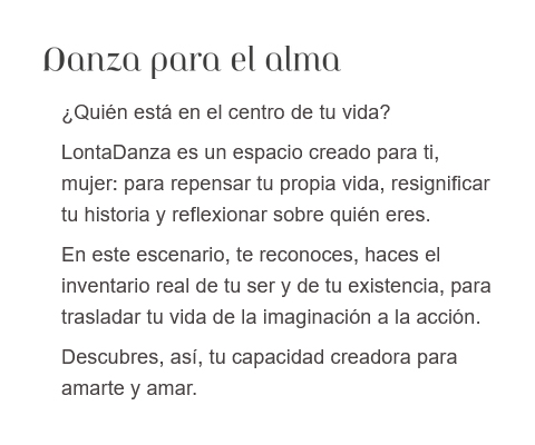 Sabina pudo ser una exiliada de su mundo interno, pero en silencio hizo una pausa para comprender la herida y proteger su alma. Se inspiró en ella misma y dio origen a LontaDanza, un espacio artístico de creación y autodescubrimiento: para repensar la vida, resignificar la historia y reflexionar sobre quiénes somos.